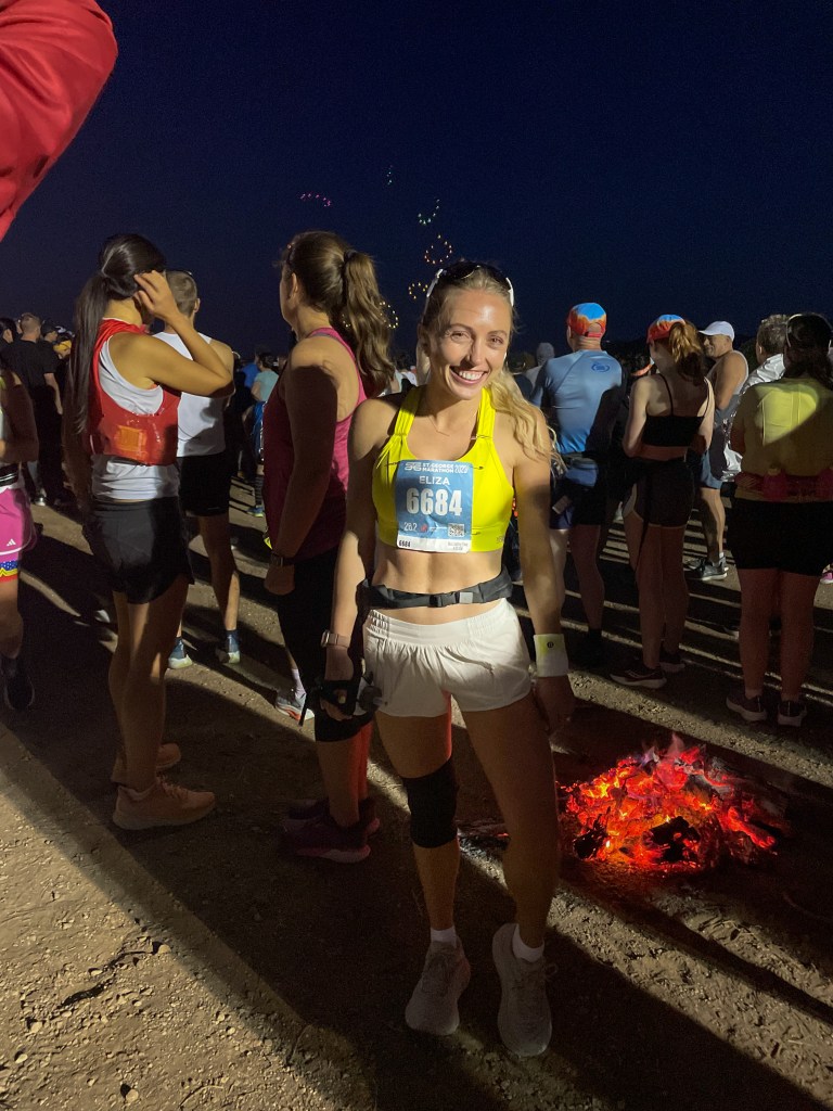 I got on the bus at 4 am just like I had signed up for 5 months prior, and we were on our way. When we got to the starting line, there was a little over 2 hours left until the race would begin. I found my coworker way quicker than I thought I would (considering there were 5,000 people there), and we chatted and waited around a fire. I did not know what was about to come, but I was excited, nonetheless. I did a lunge matrix for my warmup that I had learned from a runner friend, took some ibuprofen, put on the rest of my running gear like my sunglasses, running belt, and knee sleeve, and I was ready to go.