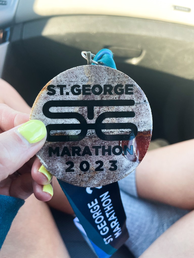 Pretty soon, it was the day before the marathon, and I was getting nervous. My husband finished the at-home care portion of his recovery, so he was able to come cheer me on. I finished up my work day early and headed to St. George for the pre-marathon convention. I picked up my bib and bag, got a toradol shot for inflamation at one of the booths, and I got all prepped for what was to come the next day.